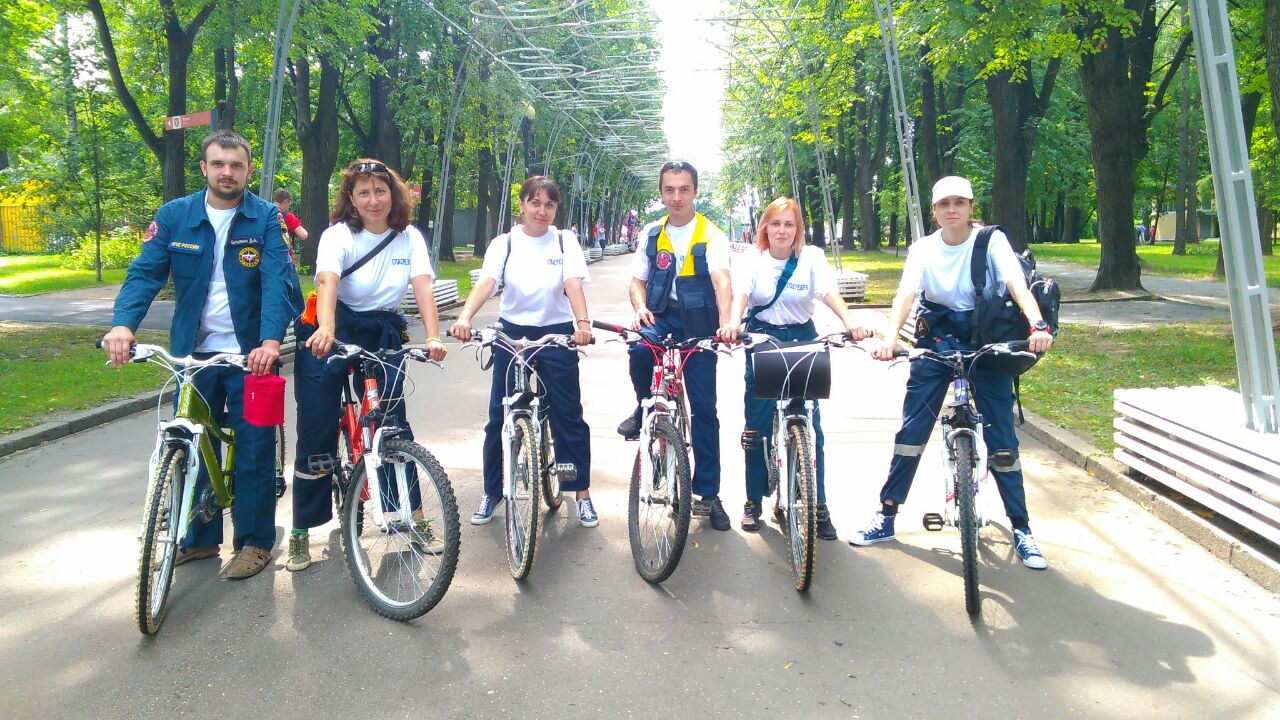 16 июля. – Измайловский парк. Патрулирование территории парка на роликах и велосипедах в рамках акции ГУ ГО и ЧС по ВАО «Управление рисками». Организован пункт обучения первой помощи. Демонстрировали посетителям парка работу с АСИ (аварийно-спасательный инструмент), рассказывали о правилах проведения аварийно-спасательных работ, о работе спасателей.