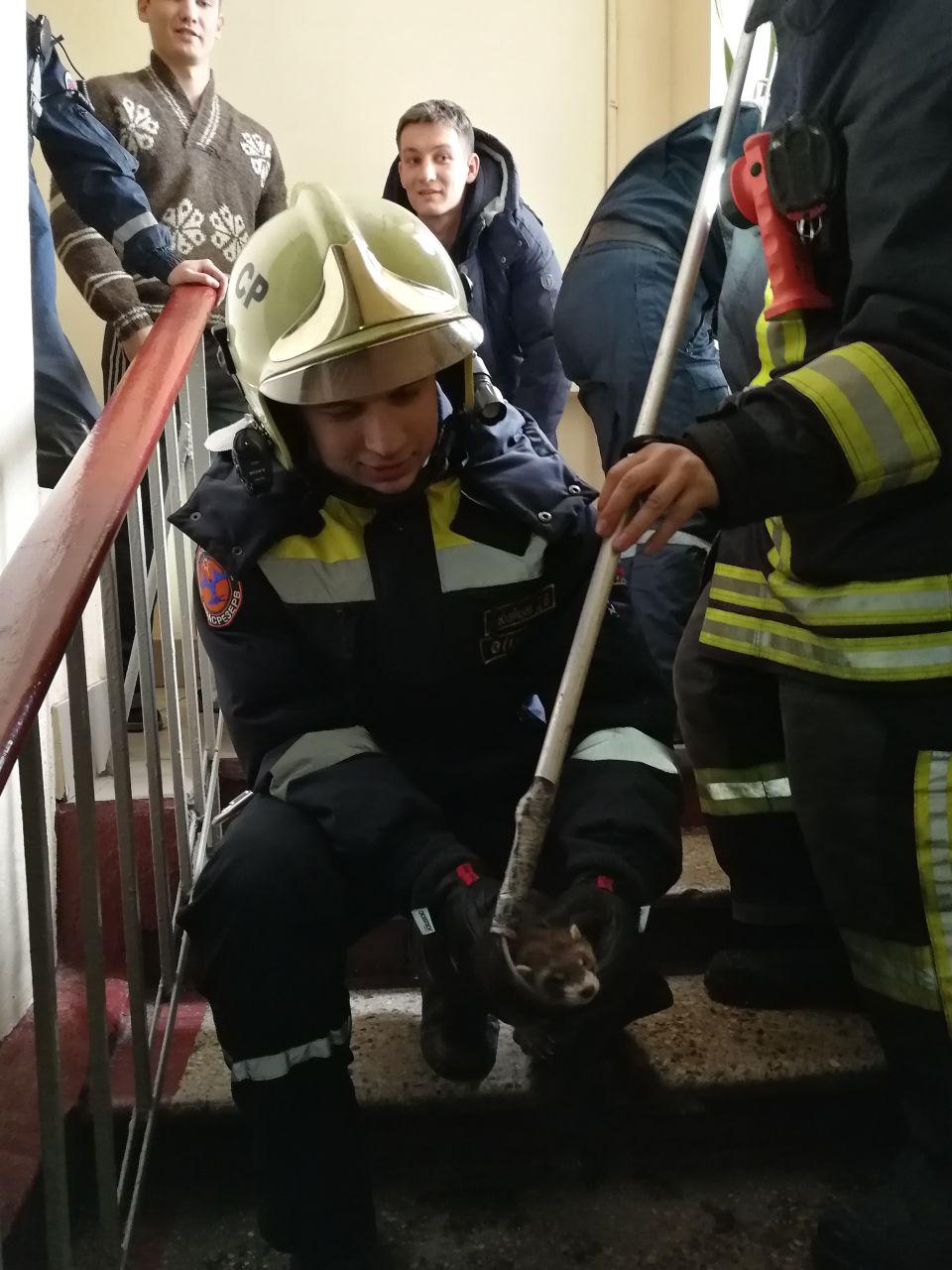 - 14:51 пр-т Вернадского, (помощь животным). По прибытии встречены заявителем. В промежутке между лифтовой шахтой и лестничным пролетом находится хорек, никто не может его достать. С помощью приспособления для ловли животных извлекли хорька и передали его появившейся хозяйке.